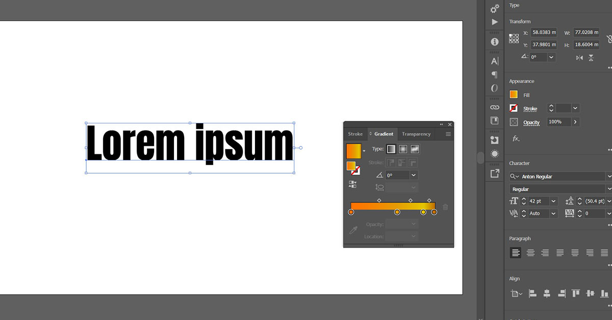 Adobe Illustrator has a unique glitch when trying to add gradients to editable text. Instead of selecting the text and adding a color like usual, there are a few extra steps you need to make.