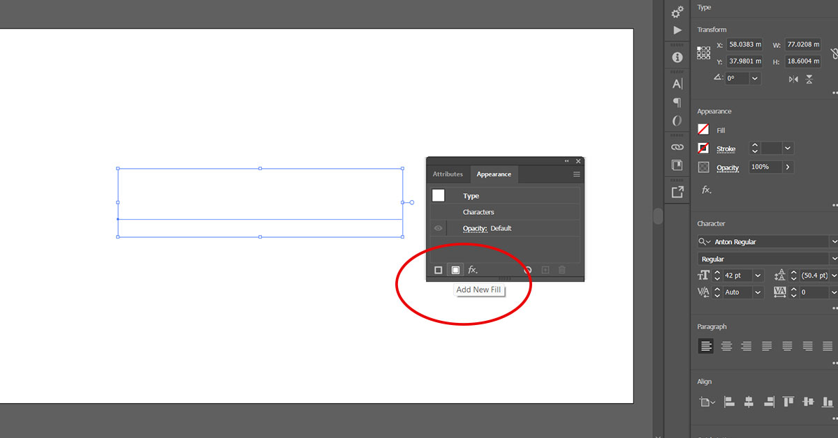 In the next image, I have gone to >Appearance and selected the small button for "add new fill". This is where you can set the gradient color you wish.